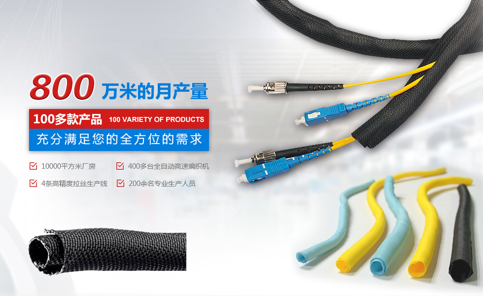 自主設(shè)計、研發(fā)、規(guī)模化大型生產(chǎn)企業(yè) 擁有廠房10000平米,400多臺全自動。高速編織機(jī)四條高精度紡絲生產(chǎn)線,員工200余人,月產(chǎn)量800萬米,中國最大絕緣保護(hù)套管生產(chǎn)企業(yè)之一。